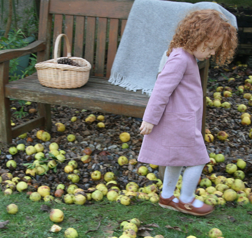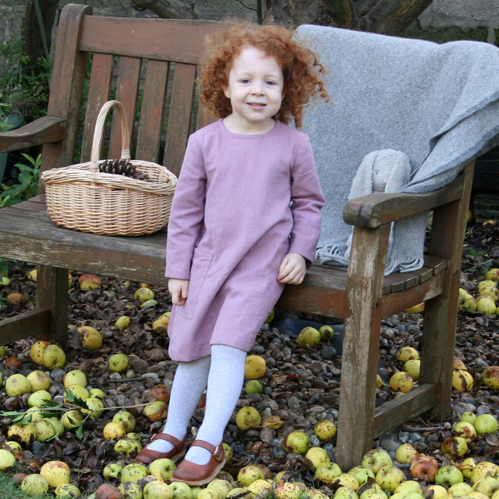Handmade, Long sleeve dress with deep side pockets and a button fastening.