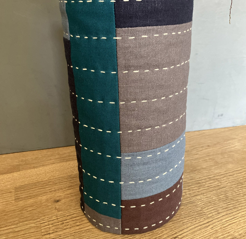 A beautifully "one-off vase and cover" handmade in our studio from natural fabrics and recycled wadding.